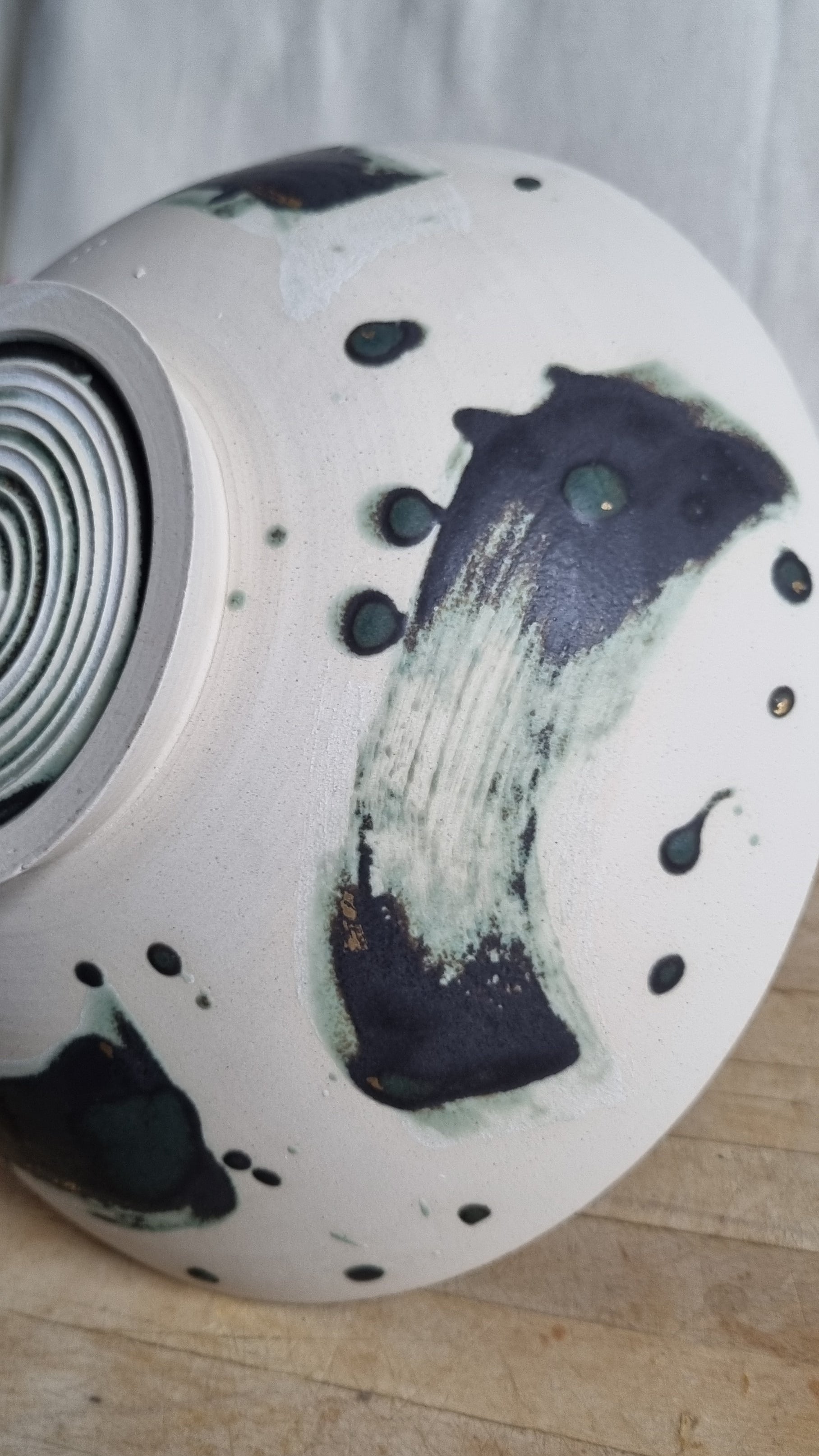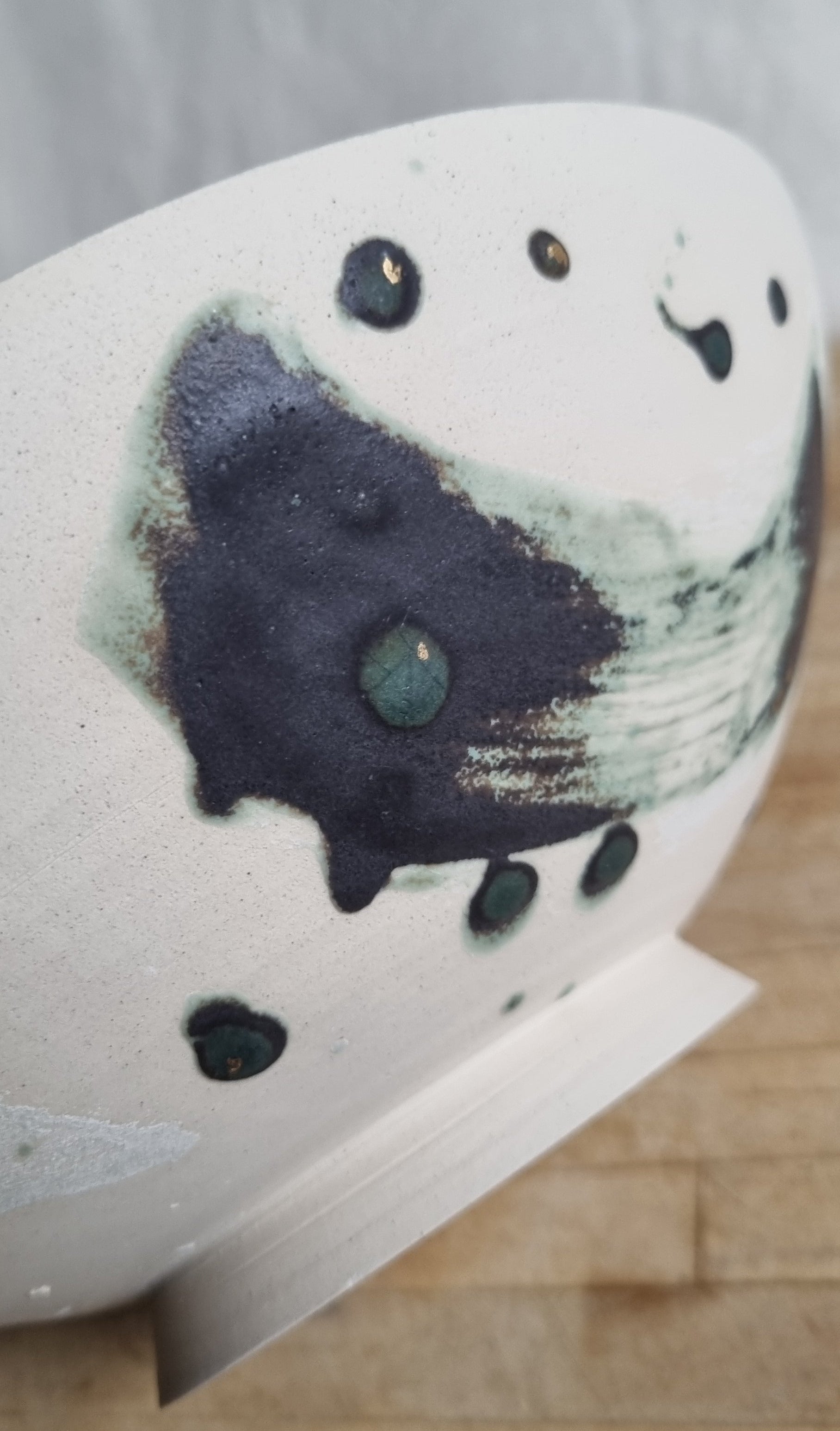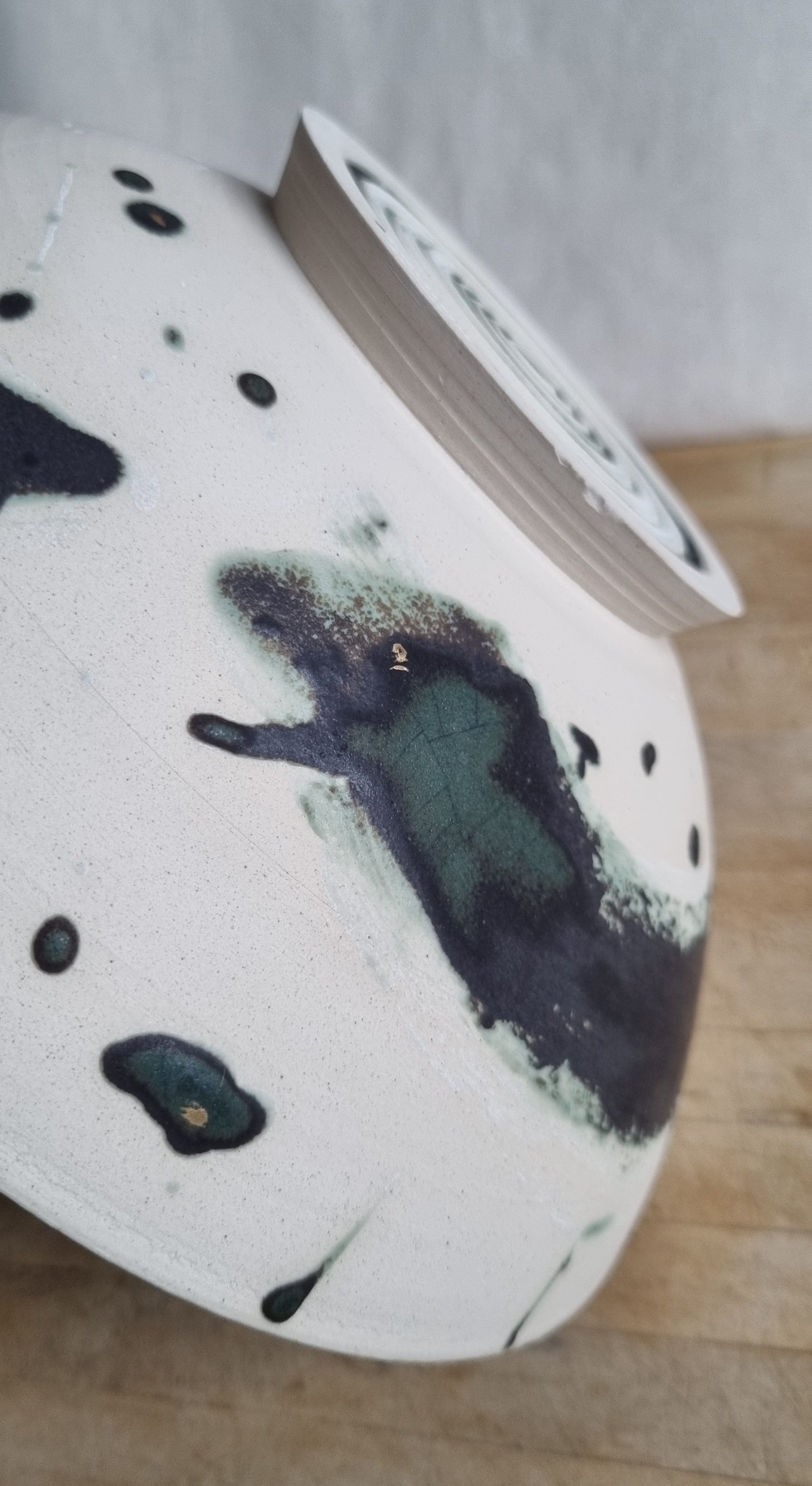 This is a great bowl and is the largest I've thrown to date. It also has my favourite foot ring to date, is finished with my favourite glaze and light details of gold lustre.